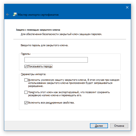 Речь пойдет об "Импорте" сертификата из закрытого контейнера в операционной системе Windows 10