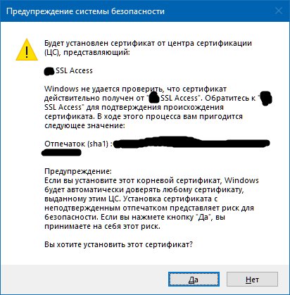 нажать "Готово" - Согласиться на установку корневого сертификата: