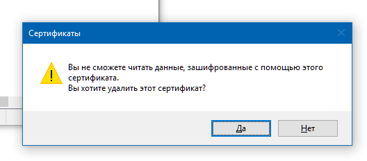 На вопрос "Вы хотите удалить этот сертификат" оветить, нажатием кнопки "Да"