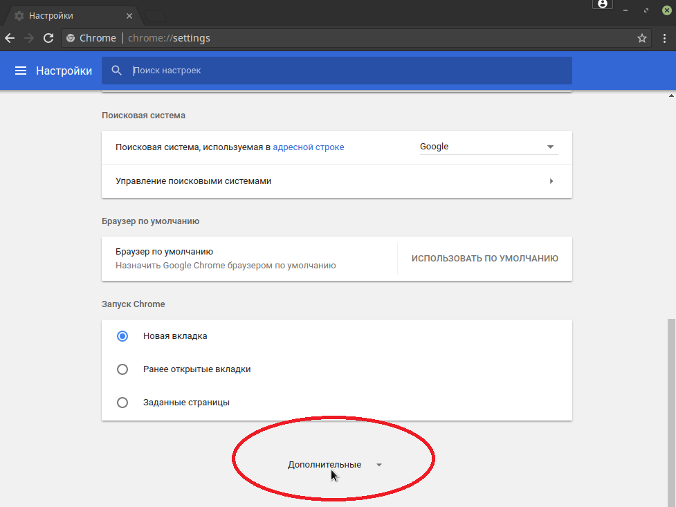 - Прокручиваем первую страничку настроек до конца вниз и нажимаем кнопку "Дополнительно".